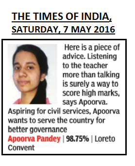 Here is a piece of advice. Listening to the teacher more than talking is surely a way to score high marks, says Apoorva. Aspiring for civil services, Apoorva wants to serve the country for better governance Apoorva Pandey|98.75% | Loreto Convent